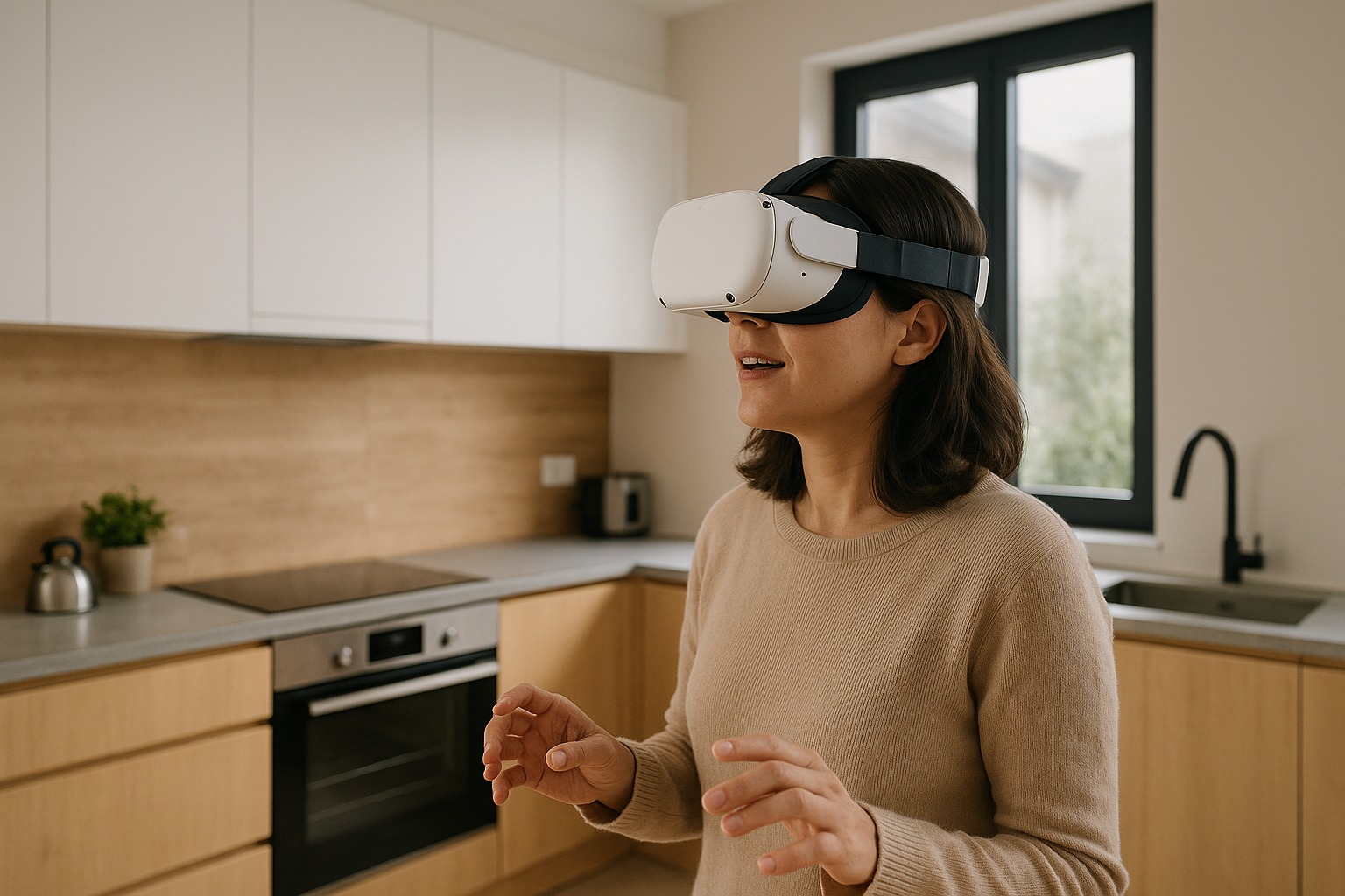 Imagina caminar entre tus muebles, cambiar acabados al instante o abrir puertas con tus propias manos… todo dentro de una escena virtual hiperrealista.